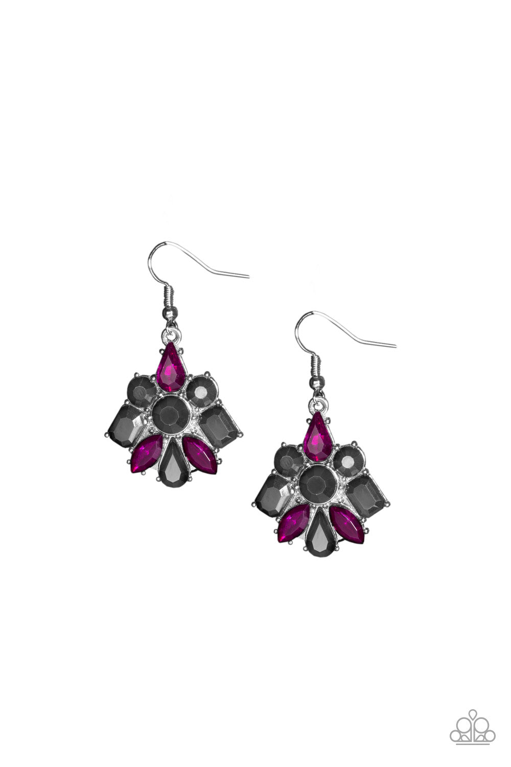 Los brillantes diamantes de imitación de color rosa y hematita, que varían en corte y brillo, se unen para crear un señuelo cegador que crea un look espectacular. El pendiente se fija a un anzuelo estándar.