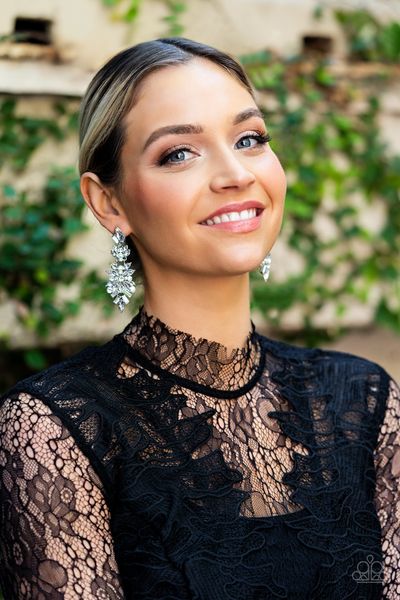 Los caballetes de diamantes de imitación de corte redondo, marquesa y esmeralda se agrupan en tres segmentos brillantes que se unen para formar un señuelo asombroso, lo que da como resultado una pieza llamativa y gélida. El pendiente se fija a un poste estándar.