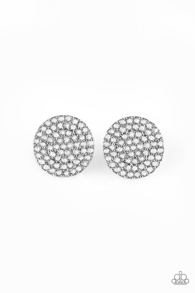 Un marco plateado brillante está incrustado con innumerables diamantes de imitación blancos, lo que crea un brillo extraordinario. El pendiente se fija a un poste estándar.