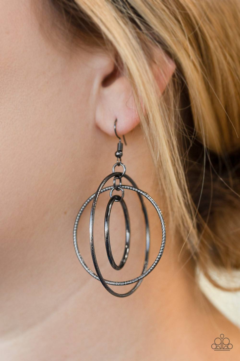 Los aros lisos y dentados de bronce se deslizan desde la oreja y se unen para formar un señuelo vertiginoso. El pendiente se fija a un anzuelo estándar.