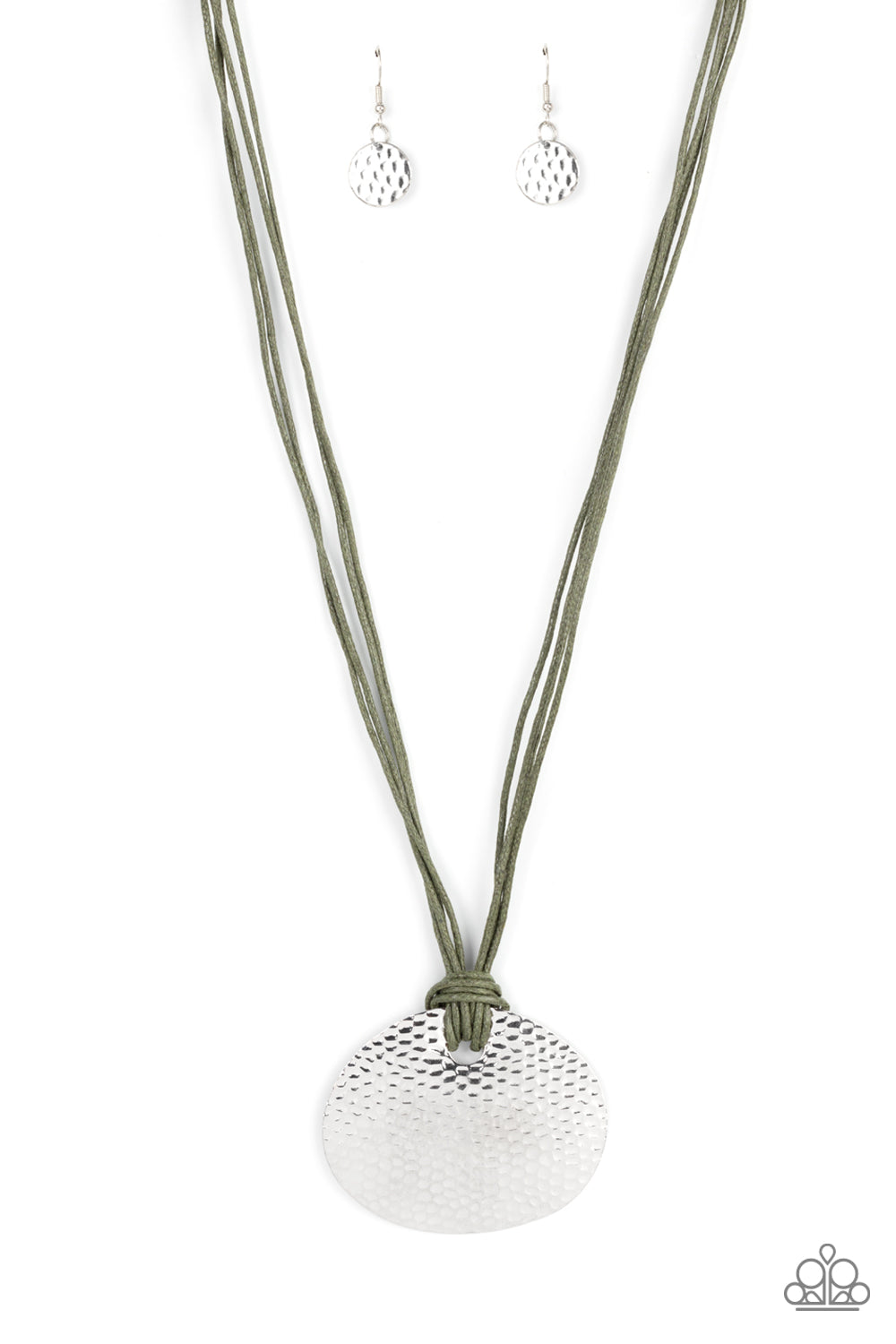 Un marco de plata martillado meticulosamente está anudado en su lugar con un cordón de rama de olivo, lo que evoca una estética de inspiración artesanal. Cuenta con un cierre de broche ajustable.