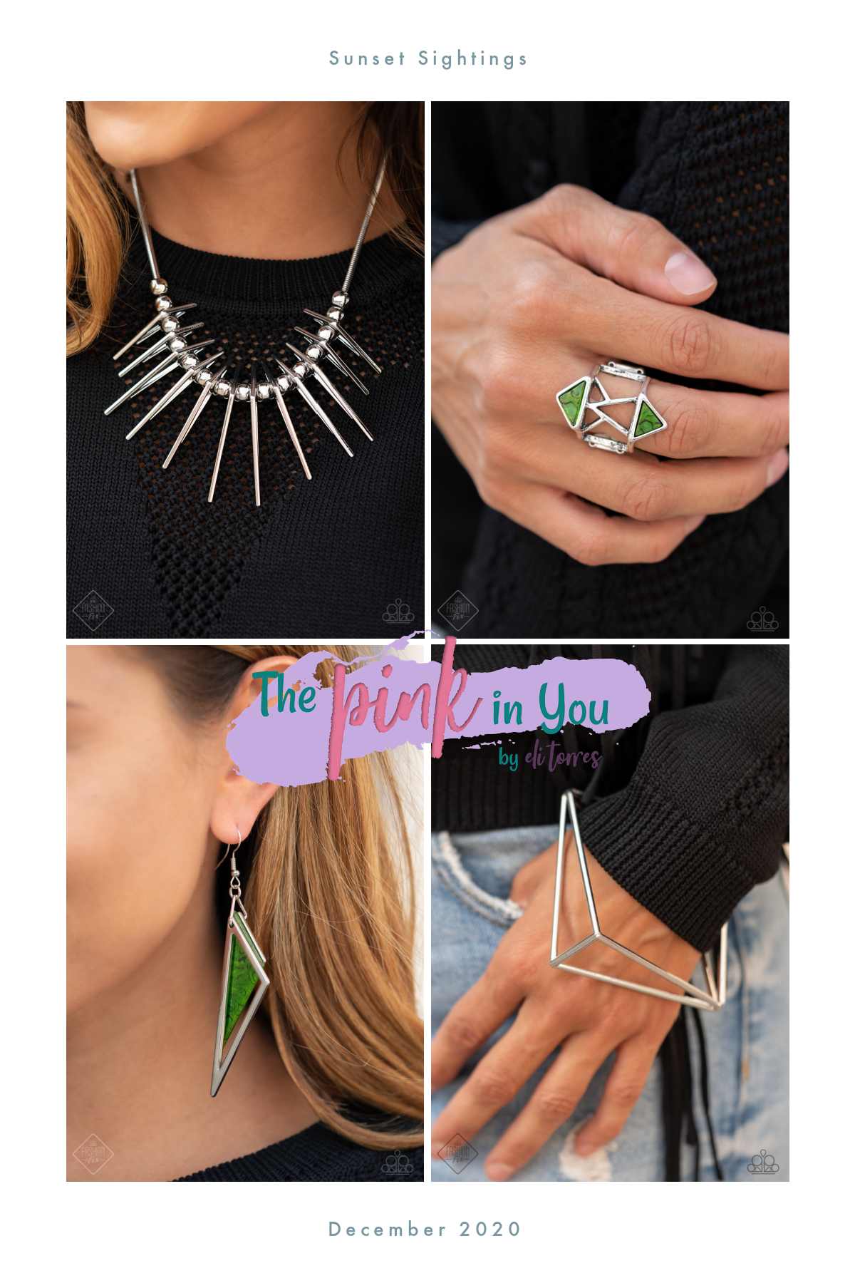 Incluye uno de cada accesorio que aparece en la combinación de tendencias Sunset Sightings en Fashion Fix de diciembre:
