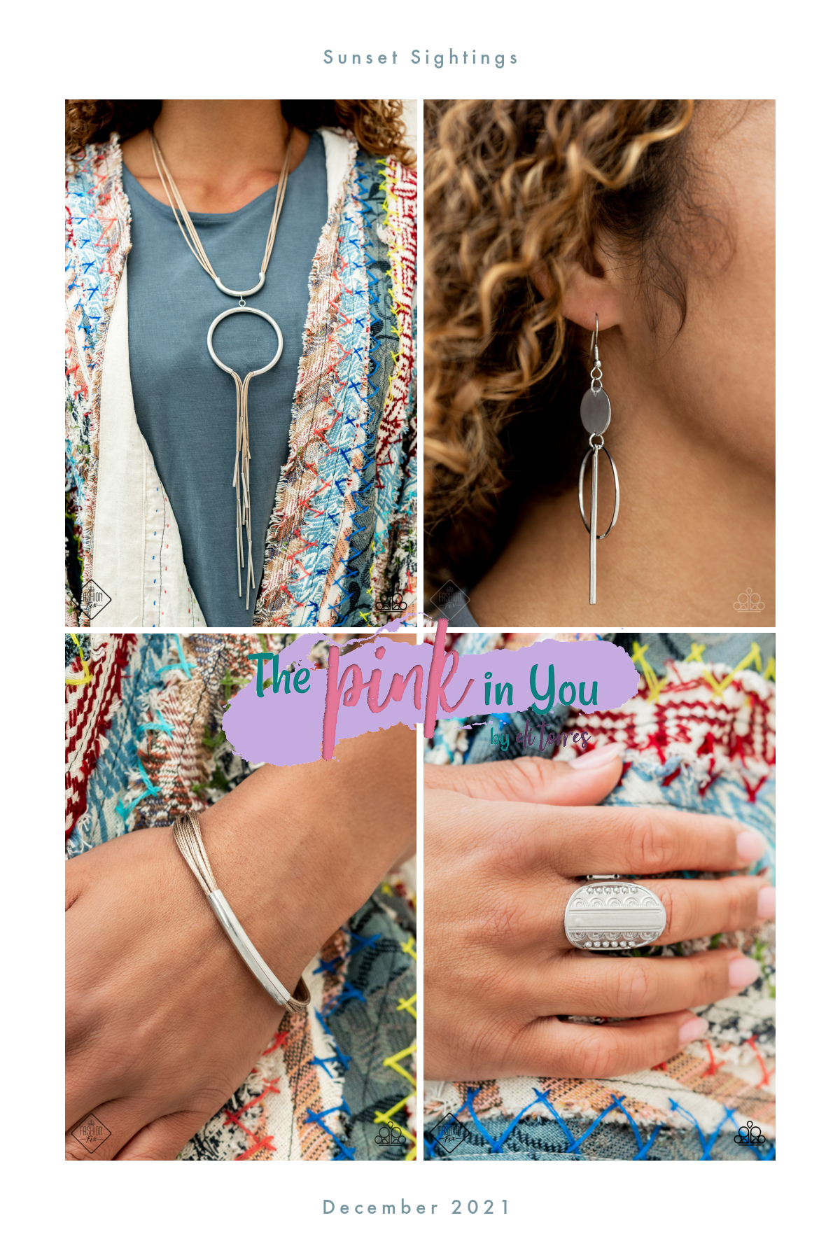 Incluye uno de cada accesorio que aparece en la combinación de tendencias Sunset Sightings en Fashion Fix de diciembre: