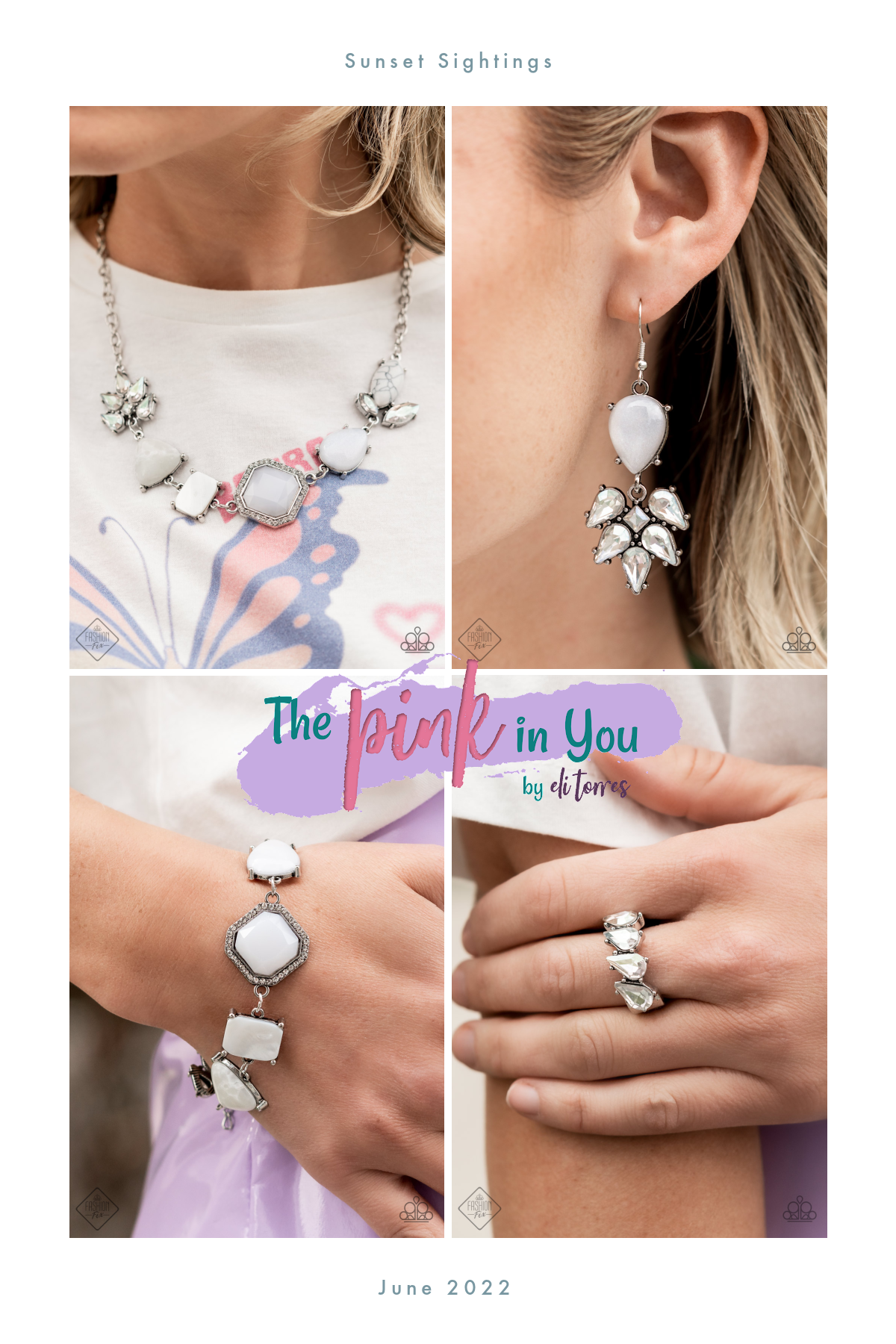 Incluye uno de cada accesorio que aparece en la combinación de tendencias Sunset Sightings en Fashion Fix de junio: