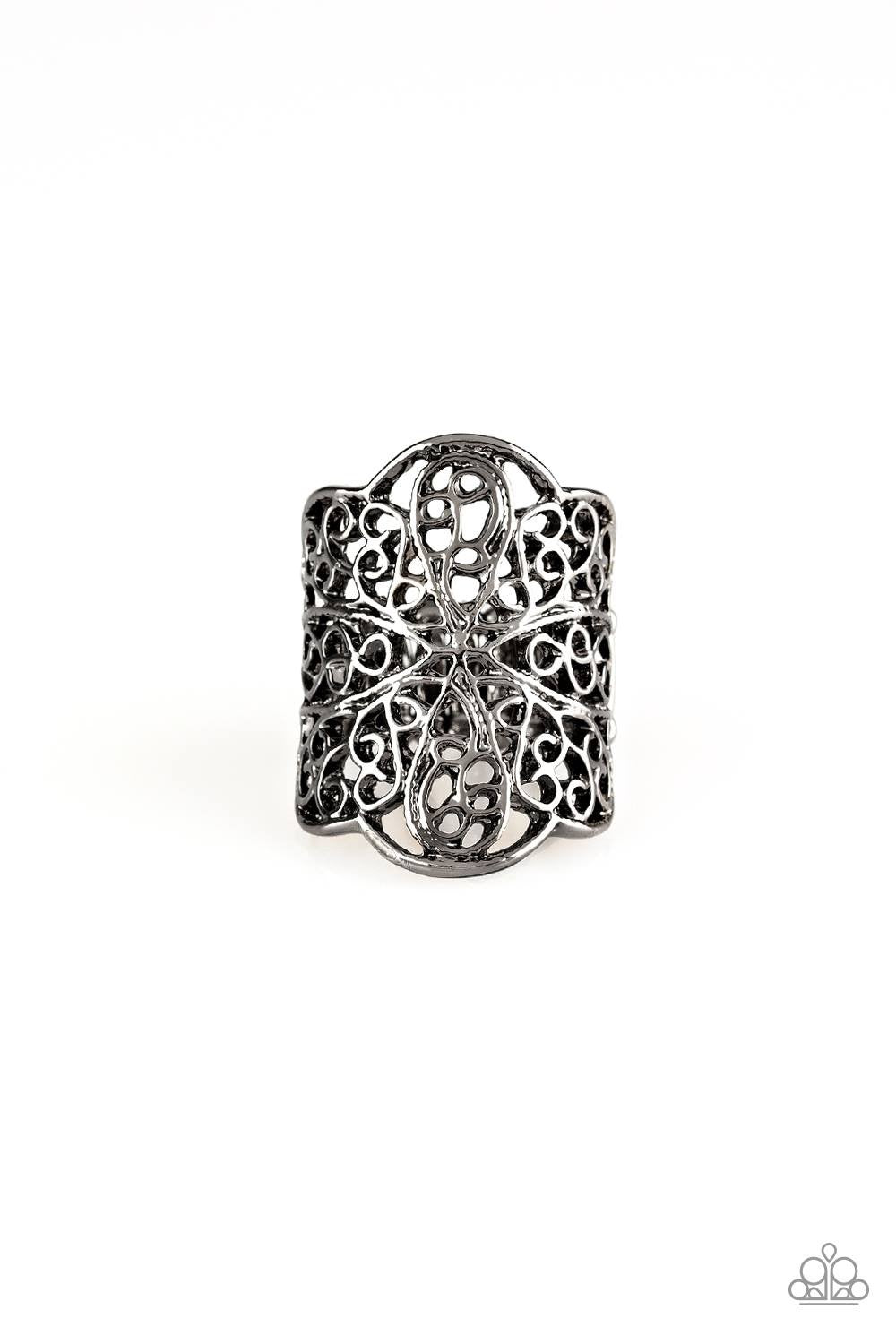 La filigrana de metal brillante se arremolina en un patrón floral con volantes en la parte superior del dedo y se fusiona en un marco extravagante para lograr un estilo de temporada. Cuenta con una banda elástica para un ajuste flexible.