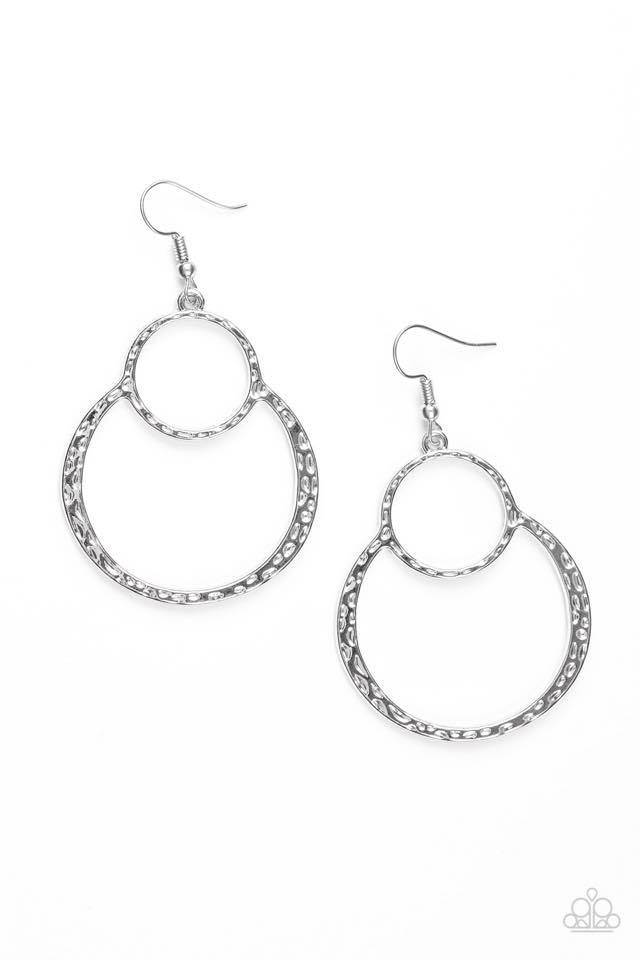 Delicadamente martillado en una textura brillante, un marco de plata asimétrico se balancea desde la oreja con un estilo de inspiración artesanal. El pendiente se sujeta a un accesorio de anzuelo estándar.