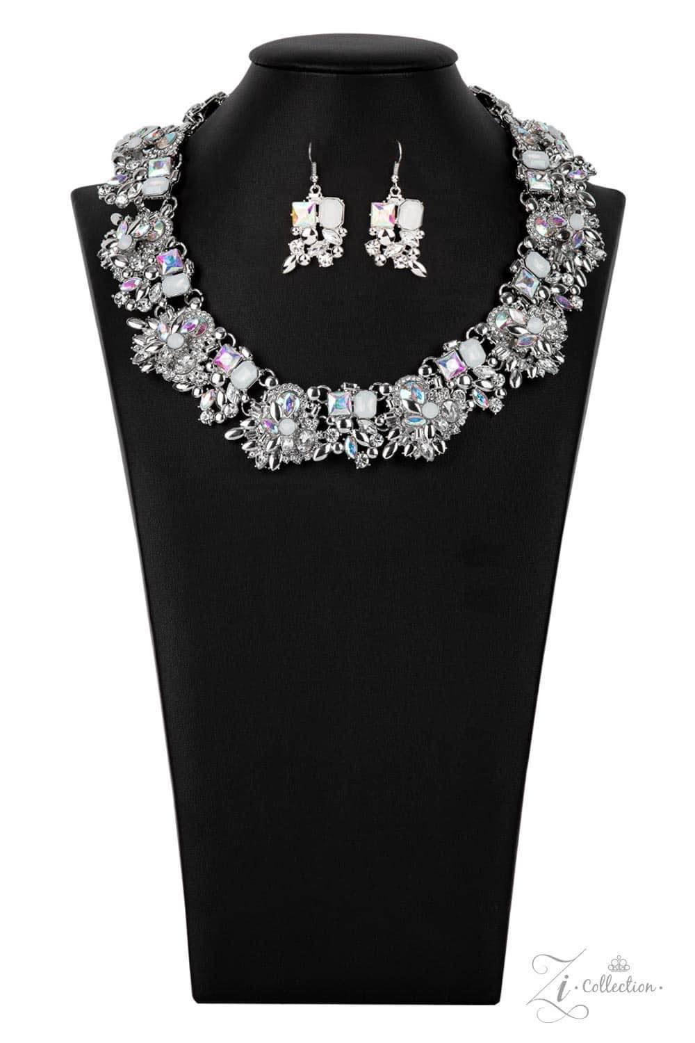 An irresistible collection of iridescent, classic white, and milky white rhinestones intentionally coalesces and stacks into opulent silver accented frames. Varying in size and cuts, the mismatched rhinestone spangled frames regally link below the collar, adding dramatic dimension to this majestic knockout with a dash of stellar 3D sparkle. Features an adjustable clasp closure.