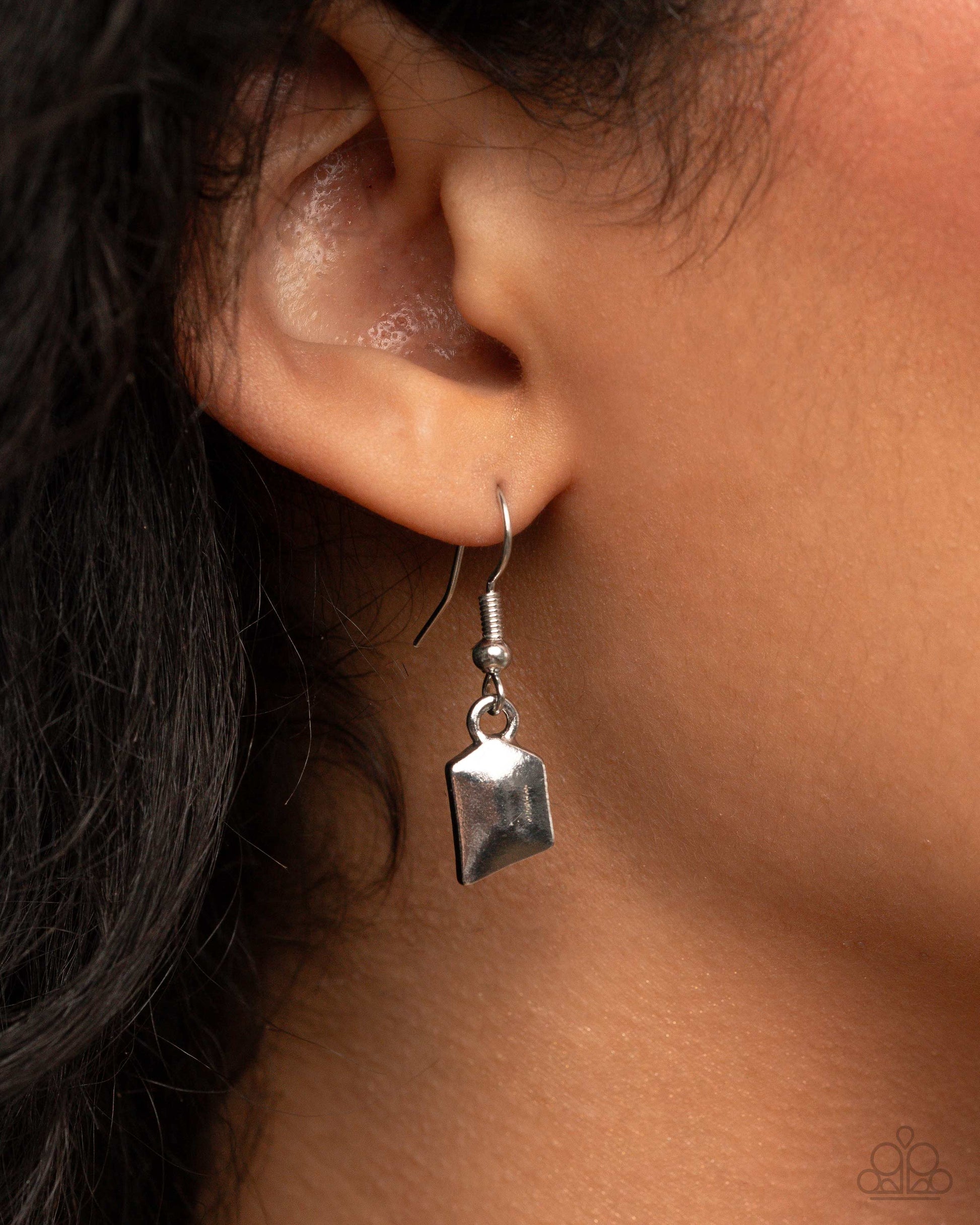 A collection of abstract silver pieces frames a trio of varying sizes of neutral abstract stones with a warm brown and black marbling from a glistening silver snake chain for a linear lawless look. Features an adjustable clasp closure. As the stone elements in this piece are natural, some color variation is normal.