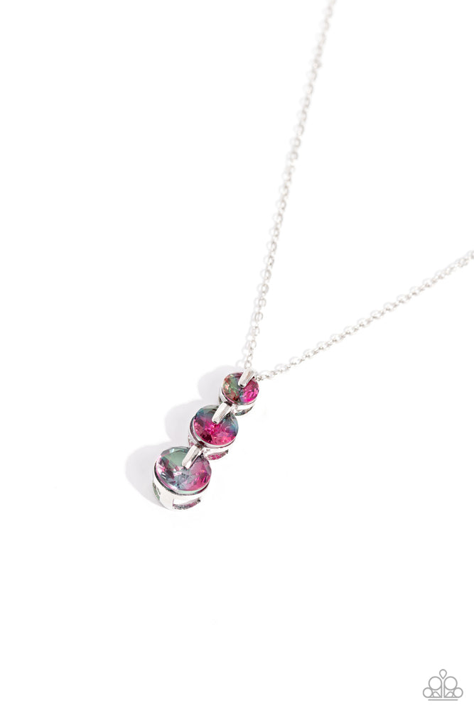 Featuring a UV finish, a collection of blue, green, and pink gems are set in elevated, pronged silver fittings as they gradually increase in size along a dainty silver chain to create a prismatic, ombré display. Features an adjustable clasp closure.