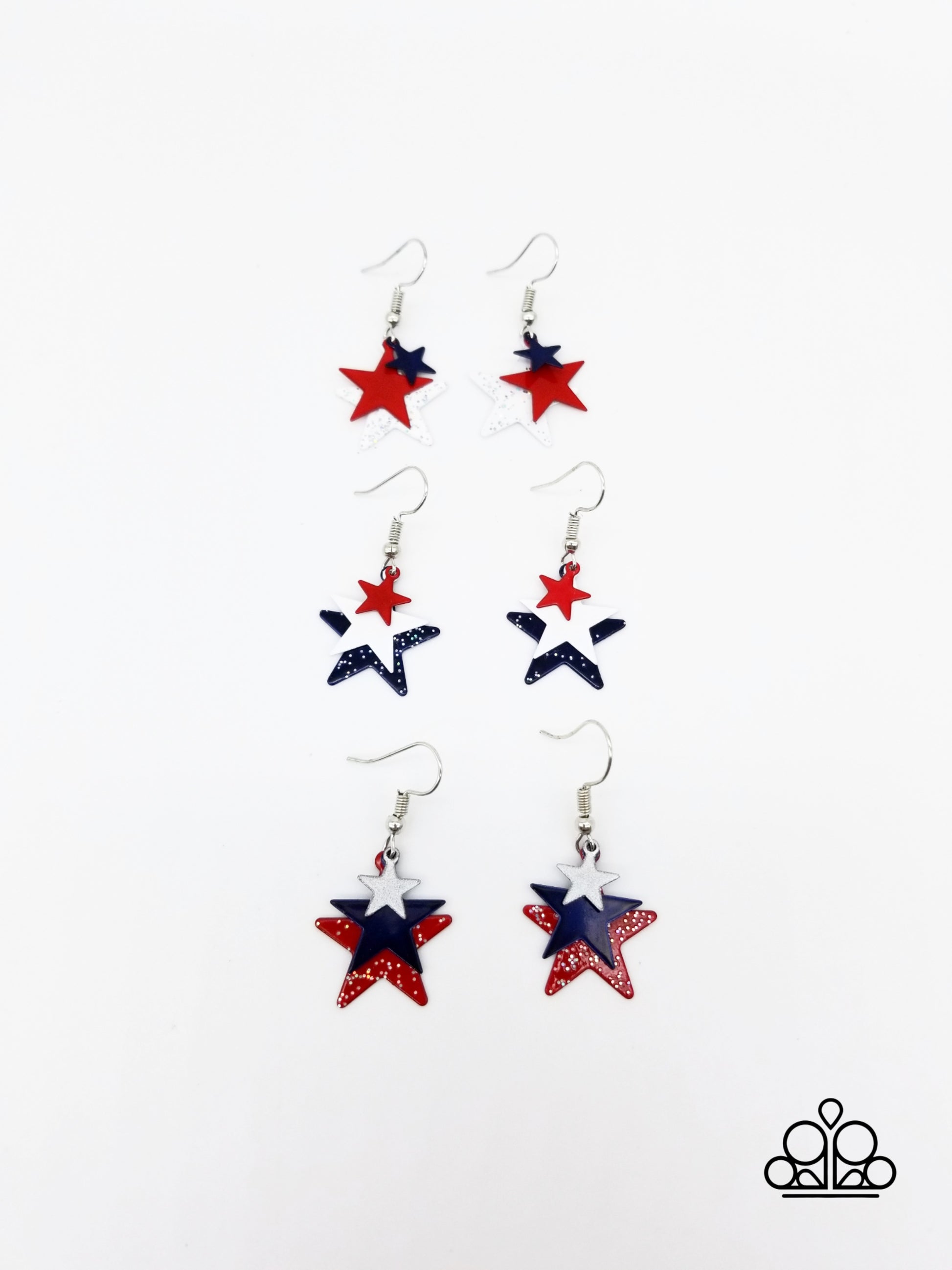 Cascading stars earrings. Comes in various combination of silver, blue, white and red.