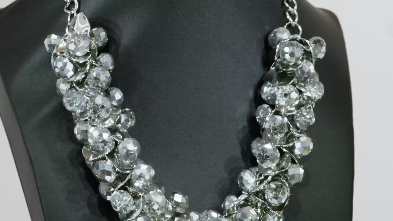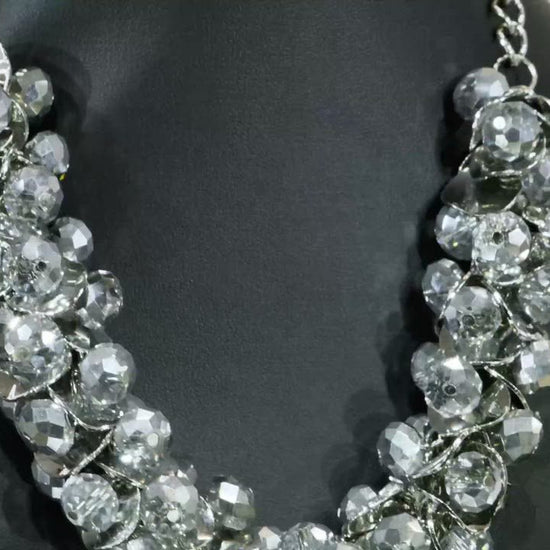 A brazen collection of metallic dipped crystal-like beads and delicately bent silver discs boldly cluster into a fearless fringe below the collar. The exaggerated display of jam-packed sparkle takes glitter to a whole new level with its unapologetic attitude. Features an adjustable clasp closure.